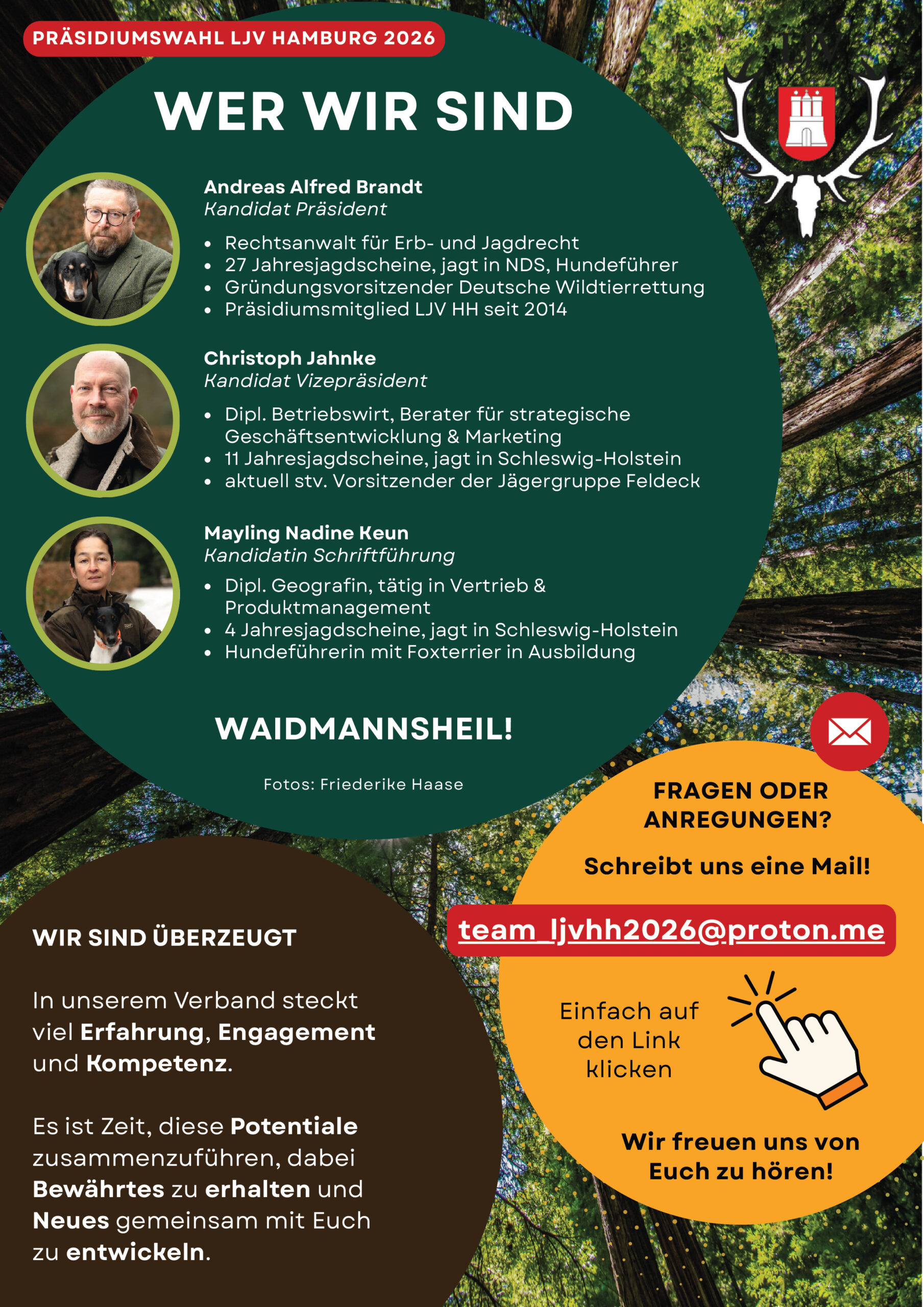 Kurzum: Wir wünschen uns, dass auch der Landesjagdverband Hamburg ein starkes Signal für die Legalisierung von Schalldämpfern bei der Jagd aussendet. Ein solches Signal kann nach unserer Auffassung am Besten durch ein starkes Votum der Basis ausgesandt werden. Deshalb würden wir uns sehr freuen, wenn ihr uns hierbei unterstützen würdet – besonders mit eurer Stimme bei der Hauptversammlung – und auch andere Jäger auf unser Vorhaben aufmerksam macht!